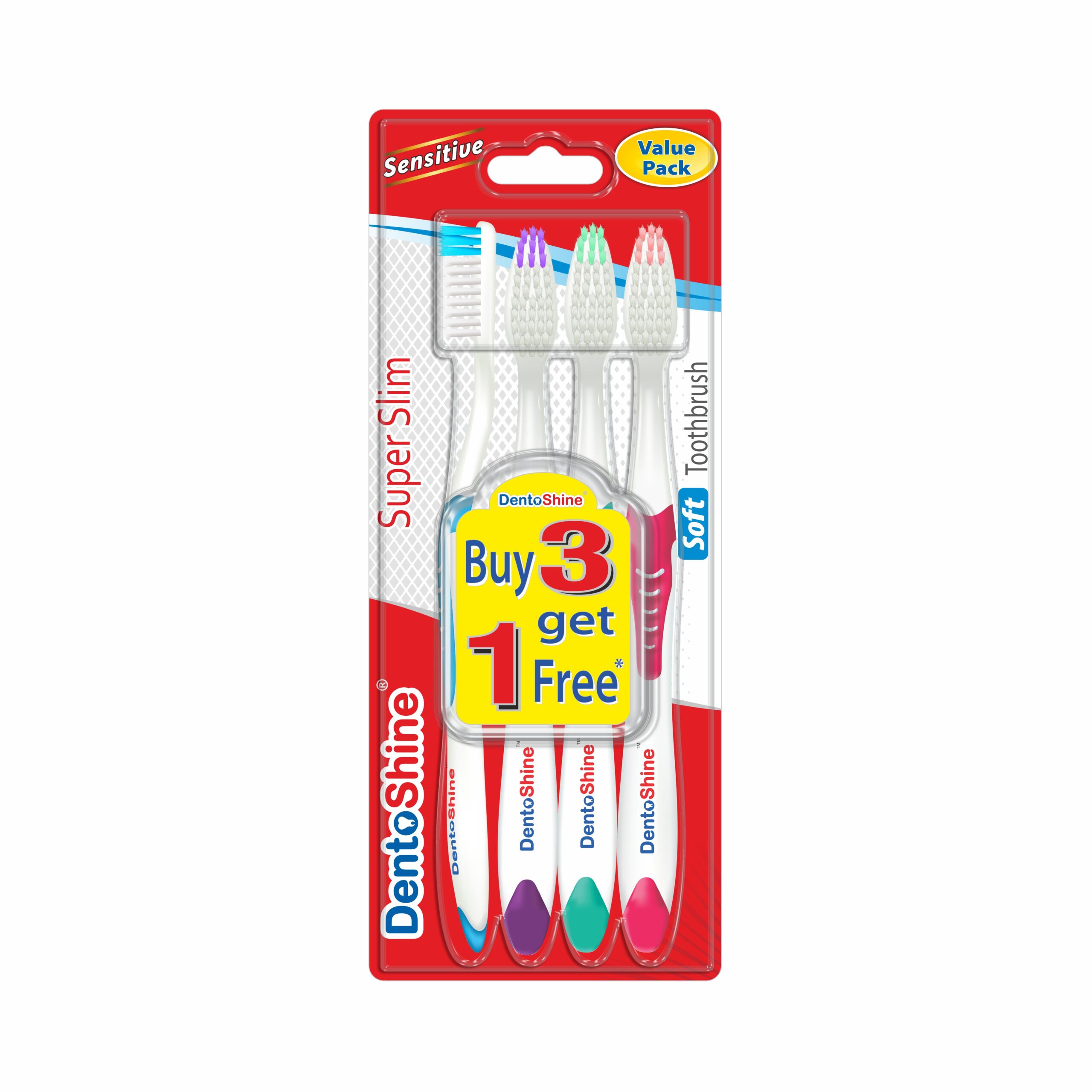 Super Slim Value Pack Soft Toothbrush (Pink, Blue, Purple, Green)